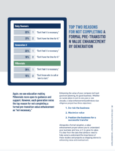 As business owners approach the critical phase of transitioning their companies, understanding the barriers to value enhancement is essential. Drawing from recent industry data, this post examines why different generations may forego formal pre-transition planning and what that implies for effective business exits.